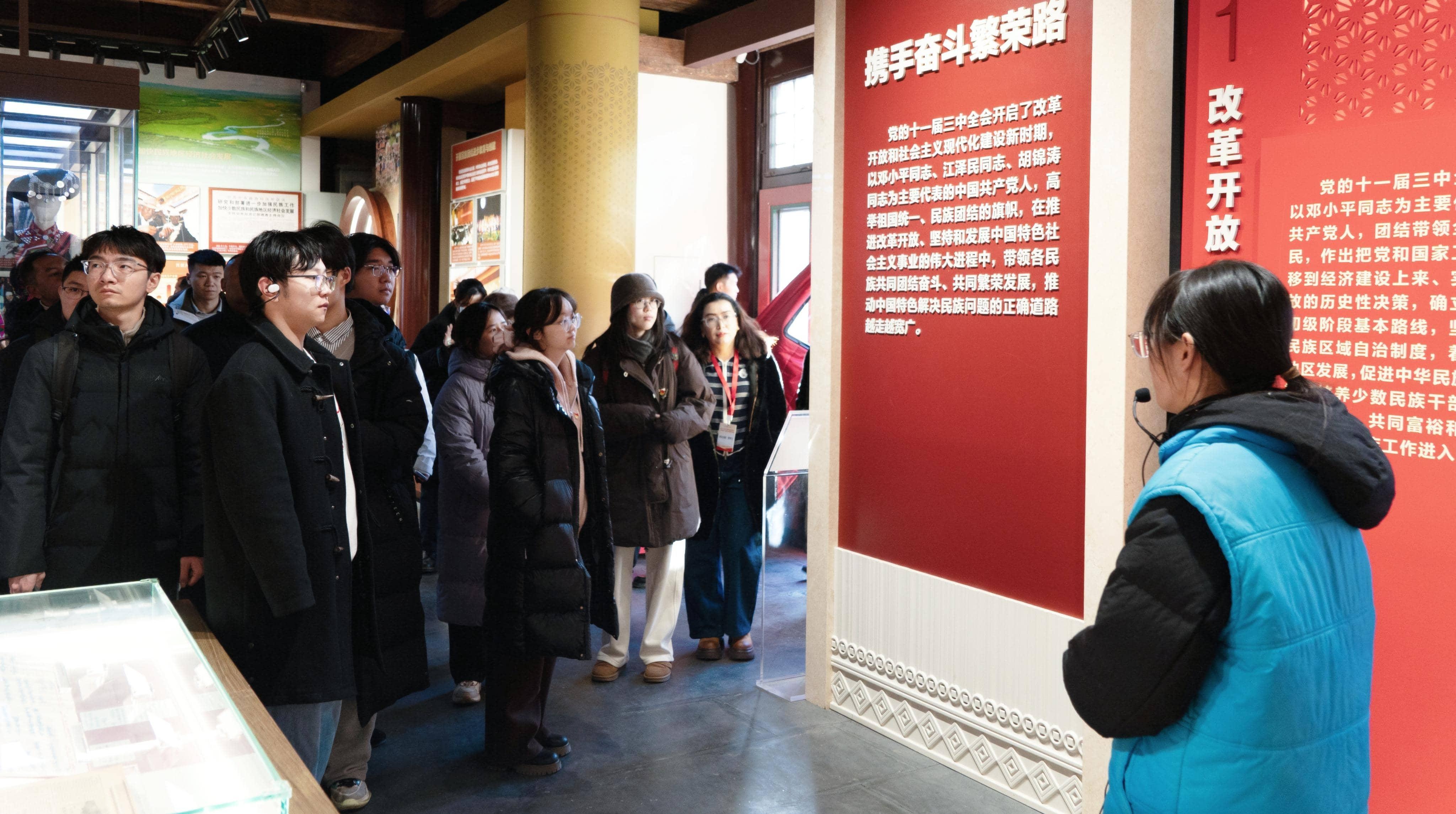 为深入学习贯彻习近平新时代中国特色社会主义思想,全面领会习近平总书记关于加强和改进民族工作的系列重要讲话精神,2025年12月20日,中国人民大学马克思主义学院本科生联合党支部赴蒙藏学校旧址,开展“时代新人看中国”主题实践活动。作为中国共产党早期开展民族工作的核心阵地,这里诞生了党史上首个少数民族党支部,既承载着培养民族干部、播撒革命火种的厚重历史,也凝聚着各民族守望相助的深厚情谊。支部成员在红色地标中回望历史脉络,在民族记忆里筑牢信仰根基,切实将学习成果转化为铸牢中华民族共同体意识的行动自觉。