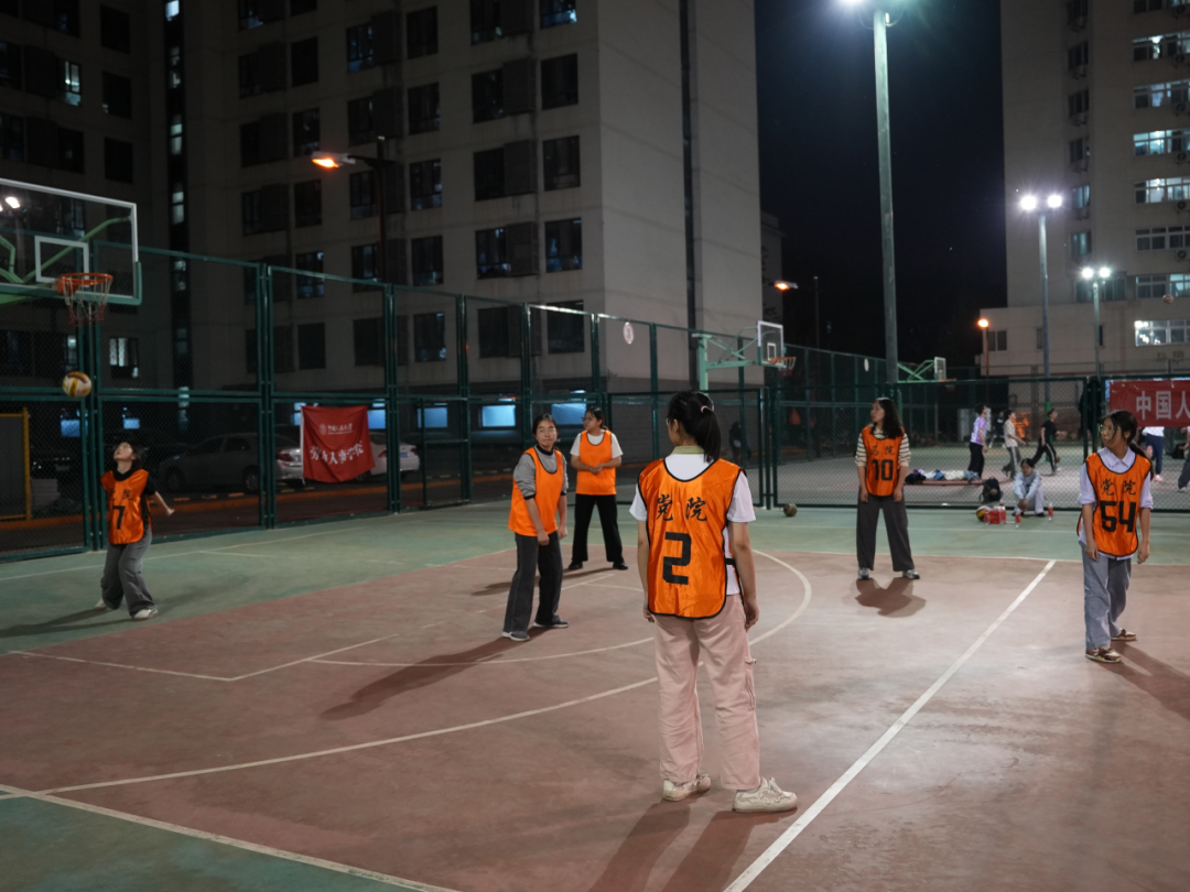 2025年4月10日晚,马院-党院女排联队在品园排球场迎来了与劳动人事学院女排的对决。夜幕降临,气温微降,但联队队员们热血难凉。面对实力强劲的对手,我方队员在赛前认真做好热身训练和周密的战术安排,摩拳擦掌,蓄势待发。