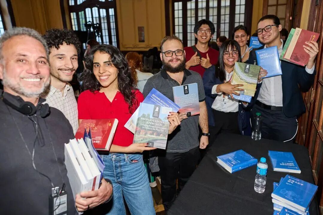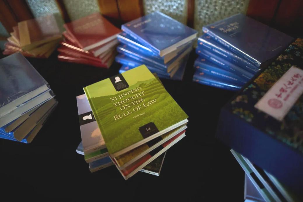 ▲“习近平新时代中国特色社会主义思想研究”丛书英文版亮相中巴文明交流互鉴与科技创新合作启动仪式现场。